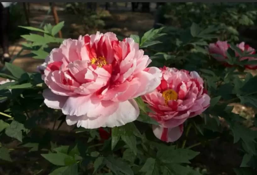 Пион встречается также под названием Красно-Белый. Обладает достаточно компактными размерами, имеет крепкие густо облиственные стебли.